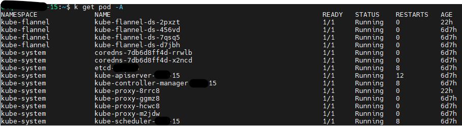 k get pod -A ( 여기서 -A는 모든 namespace )를 통해 CNI와 kube-proxy가 Worker Node에 잘 설치되었음을 확인할 수 있다.