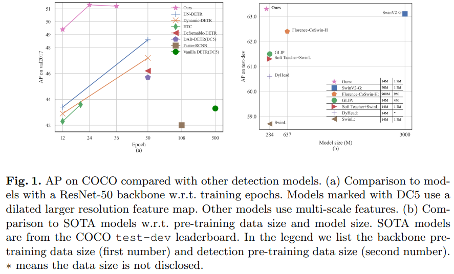 - 향상된 디노이징(denoising) 앵커 박스 기법을 도입하여 정확도를 개선