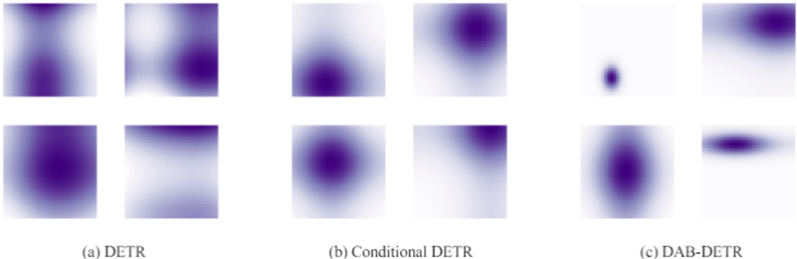 - Conditional DETR은 2D 좌표만 삽입해주었기 때문에 동일한 크기의 가우시안 형태