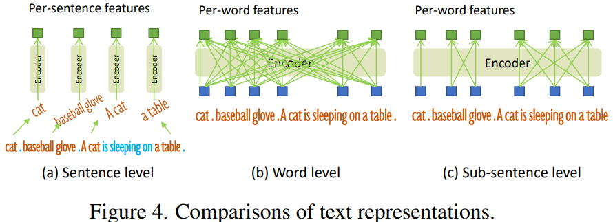 구문 접지 데이터(phrase grounding data)에 Some sentence가 여러 개의 구문을 가지고 있다면, 특정 구문을 제외하고는 다른 단어들은 discard(폐기)합니다. 이러한 방식으로 문장에서 세분화된 정보를 상실하면서 단어 간의 영향력이 제거하는데 쉽게 말해 세밀한 정보가 소실된다고 생각할 수 있습니다.
