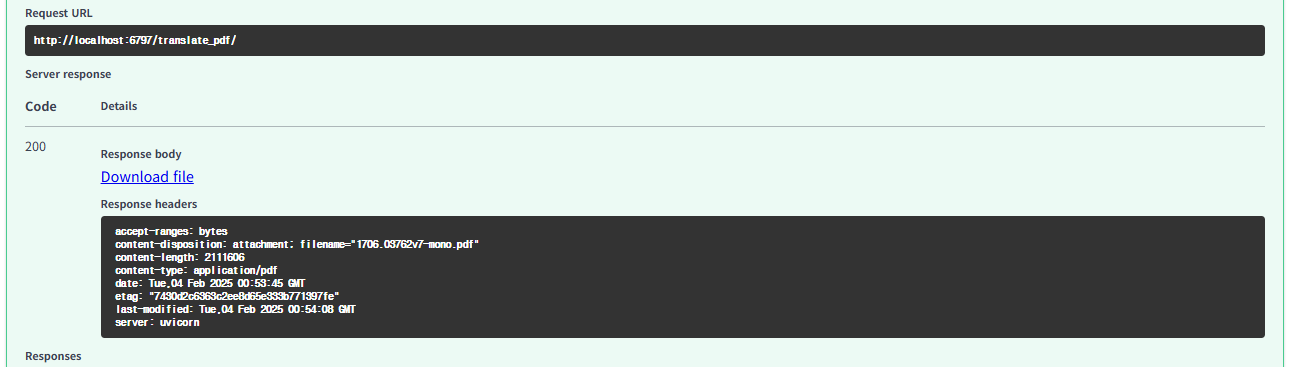 오늘은 최근에 중국 Baidu에서 나온 PDFTranslate를 활용하여 FastAPI를 구현했습니다.