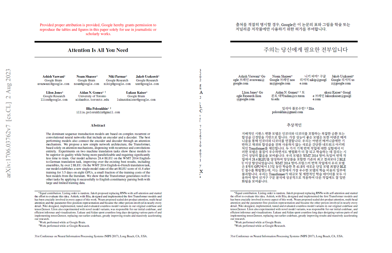 하지만 번역이 완벽하지는 않습니다. 아래에서 보시면 직독직해 수준이긴 합니다. 그래도 수식 레이아웃, 글자 레이아웃을 완벽하게 보존하면서 번역을 한다는게 정말 대단한 기술인 것 같습니다. 추후 PDFTranslate 버전이 업그레이드되고 더 번역 수준이 높아진다면 논문을 쉽게 읽을 수 있을 수도 있고 이 API를 잘 활용하여 솔루션을 만들수도 있을 것이라 기대합니다.