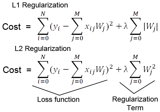 - W가 너무 큰 값을 가지게 되면 과하게 구불구불한 형태의 함수가 만들어지는데, Regularization은 이런 모델의 복잡도를 낮추기 위한 방법